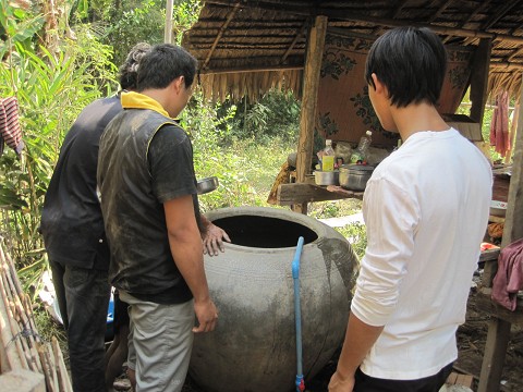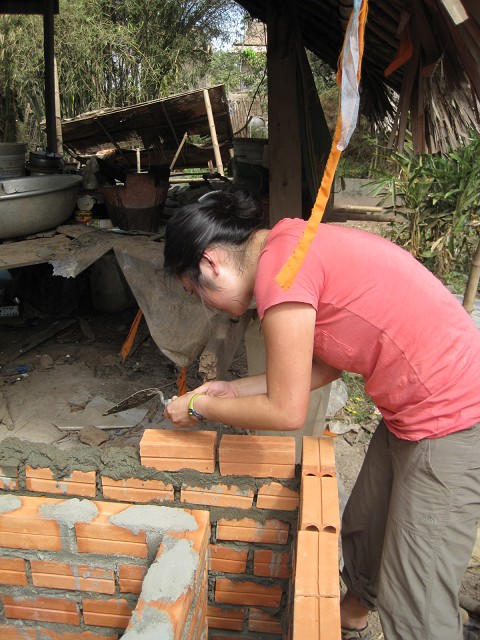 Installing a pipe so a half-paralyzed woman we visited could have running water