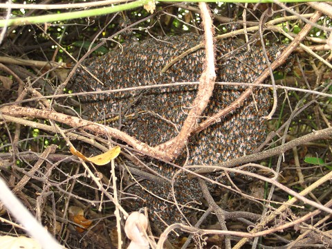 The honeycomb we cut and ate. No fancy beekeeper suits, just a little puff of cigarrette smoke and a machete!