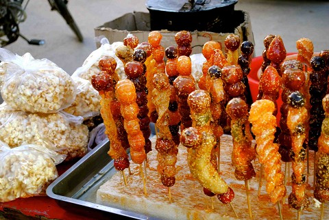 Fruit dunked in sugar on a stick anyone?? People in Asia love their sugar.