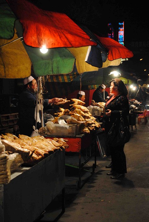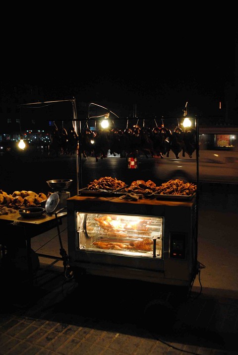 Roasted chicken anyone? At night the streets come alive – it’s a food tasting party.