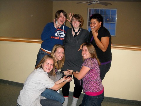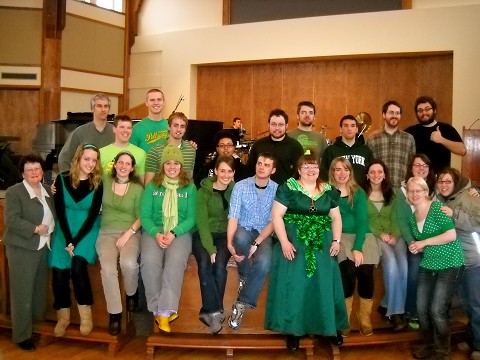 some of the senior class sporting our color – green during winter madness week.