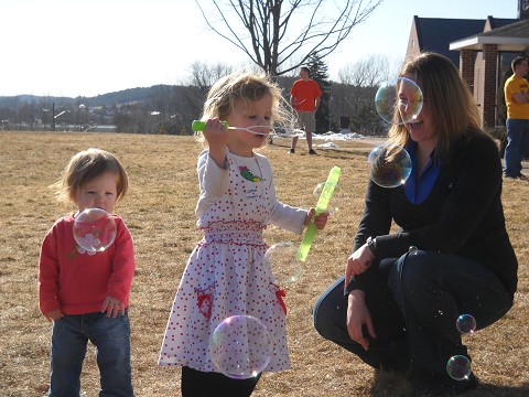 This is me hanging out and playing bubbles with a few of my favorite campus kiddos.