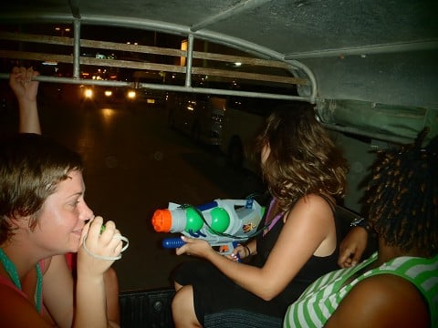 We loaded into the trucks, along with trashcans full of water, and went to celebrate.