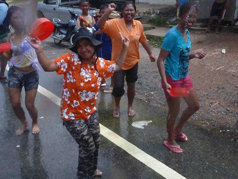 Some local Thai ladies dancing in the street to commemorate the New Year.