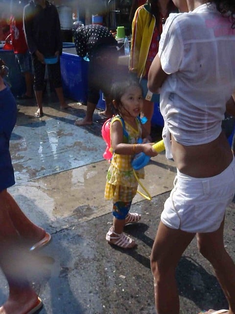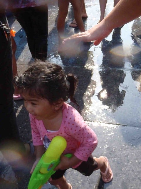 This little girl had a plastic book-bag tank full of water…and sprayed people as they walked by giggling!