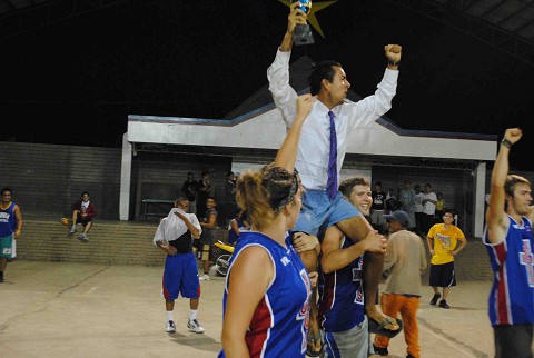 When we scored the winning basket…Coach Blake had our referee friend run on the court with a trophy!
