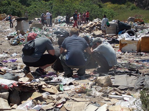 (praying with men who live at a landfill)