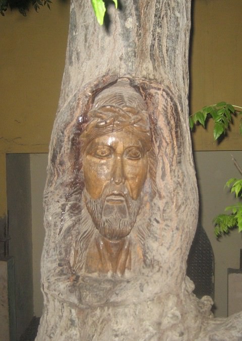 An Easter Surprise? A Carving in a tree at a Church Members Home.