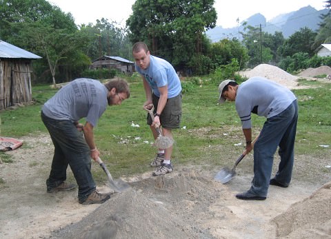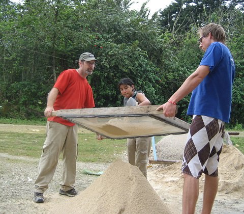 So, Sunday morning we met at the church and began sifting sand and gravel. We separated enough pure sand to mix with cement mix to create mortar for bricklaying. Apparently Javier hired the Mason. We were just the grunts for the job. It was good to do something physical though.