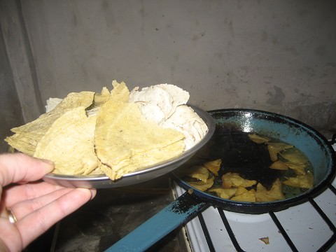 We have eaten a lot of cold cereal, or hot oatmeal or scrambled eggs for breakfast. Lunch is egg or tuna sandwiches, maybe yogurt from one of the local stores or leftovers. We’ve eaten spaghetti a couple times for dinner (we can get fresh tomatoes locally). We also eat a lot of rice and beans. We quarter and fry the corn tortillas almost daily to make homemade tortilla chips (yummy).