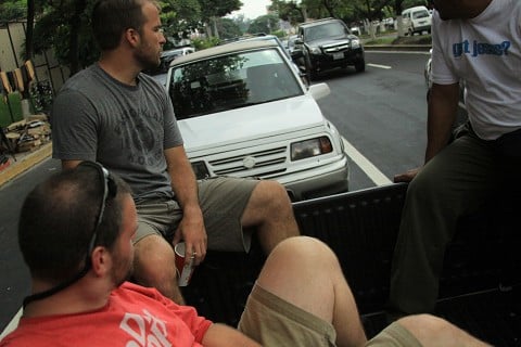 Then God changed the plan, and only for the better.  We got to the bus station in Guatemala City only to find out that the bus was full and so was the competition bus company’s bus that was going the same route.  So we were not going to get to leave until the next day. (They do not take reservations so that is why our seats were not saved) So we stayed in the Hostel that is attached to the bus station.  This would not have been a problem except for the fact that they only had one tiny room left with two twin beds.  Let me remind you that we are a team of 7 and at this time we have all of our packs which are like adding another to each of us.  So needless to say this room was not big enough.  It actually did manage to hold all of our stuff and 5 sleeping people.  I did not sleep at all that night because I knew that we had a bus ride the next day and I am not the best at sleeping on busses so I thought if I was extremely exhausted maybe I would be able to sleep better on the bus.  It payed off. We got on the bus the next day at 4:30 AM and headed for El Salvador.  I slept ok on the bus.  The problem we now had was that my teammate’s friend who we are staying the night with has class till about 5 and we are getting to El Salvador at about 11:00 AM because we took the morning bus instead of the evening bus as we originally planned.  Im going to let you guys know that the rest of the world is not safe.  It is not safe for a group of 7 “white” Americans to walk around a city carrying everything that own on their backs.  We didn’t know what we were going to do.  God had it all figured out though.  When we arrived in El Salvador and departed the bus we immediately saw another one of the World Race teams.  It was team “Crash of Love”.  Their team leader is Dustin Suttle and they are awesome.  It was so good to talk to them for a little while about there month of ministry.  While we were talking to them, Dustin introduced his ministry contact from the month to Christina, one of my teammates.  His name was Oscar and he only spoke spanish.  We were in luck because Christina’s degree from college was in Spanish and she lived in Spain for a while so it was good that she was the one introduced to him.  During her first conversation with him she asked if he knew of a place that we may be able to store our stuff for the day until our ride came and picked us up later that day.  He quickly volunteered to host us for the day and knew a church that we could keep our stuff and then he would take us to a mall to hang out and then to top off that he knew the guy that we were going to meet that evening and offered to drive us and our stuff to his house.  It was perfect timing because had we come a day earlier we would have not had a ride or have seen the other team.  So we went and put our packs in a church and then rode a bus to the mall.  We ate at the mall and then went back to the church to grab our bags and then Oscar drove us to meet the guy that we were spending the night with.  When we got there they had dinner cooked for us, a El Salvadorian specialty, called pupusas, which are corn tortillas stuffed with refried beans and cheese.  Absolutely delicious.  We played card games and hung out till bed.  We then got up at 3:30 and jumped in a taxi and headed back to the bus station.