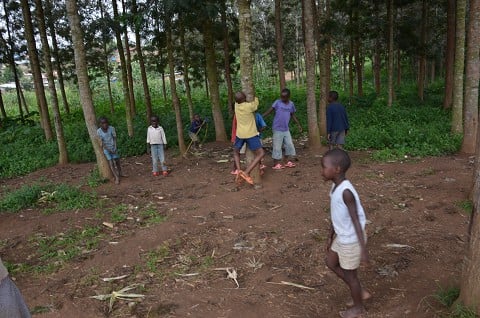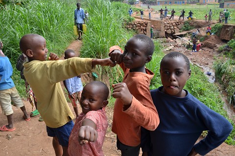 The house we are staying in is located on a side hill located about 20 minutes drive from central Kigali. In the valley below the house, there are cooperative corn fields that are rented by families in the area. Next to the cornfield is an area of run-off water along with a group of palm trees. This is where Moses introduced us to the "Beach Boys".