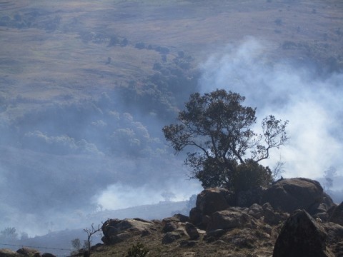 the view from the back side of our place, you can not see the banana grove the smoke is so thick.