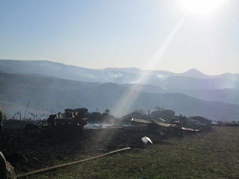 our kitchen, the houses are about to go up in flames.” We rushed outside