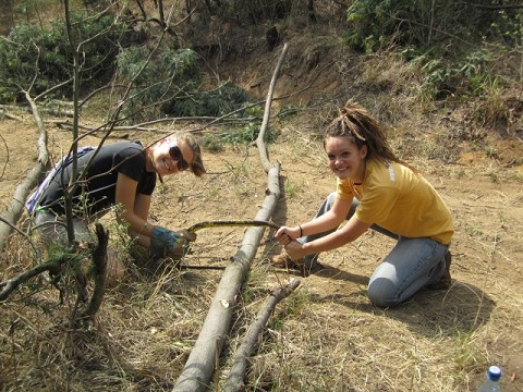 Immediately we went to work on the repairs. Chopping down trees, making fence