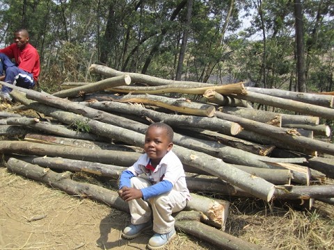 pile of logs collected after 2 hours of work in the forest by 7 of us