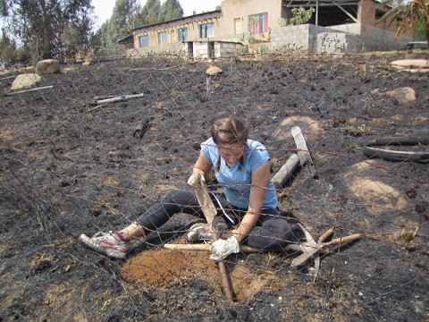 posts, digging holes, wrestling with the barbwire fence, chopping down the