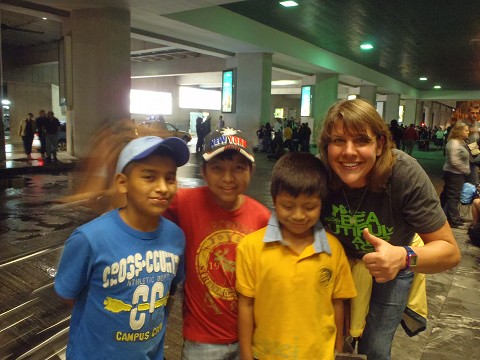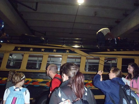 So I had a bracelet to give them and a tract in spanish and they were super excited! We then hopped on a bus (luggage goes on top of course)