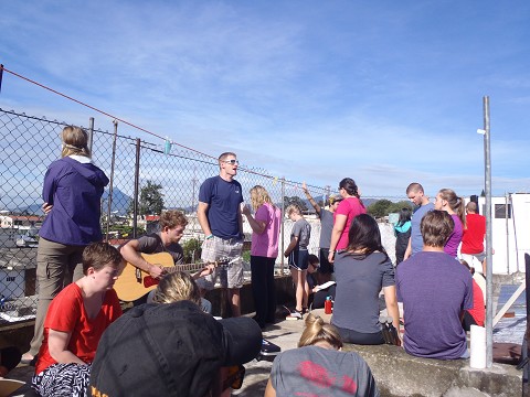 and drove a short distance to stay at an apartment for the night. We bonded well as all 60 of us stayed in the same place. We had great worship with a non-active volcano in the distance- it was awesome!