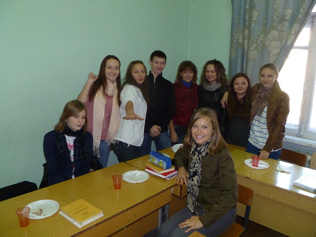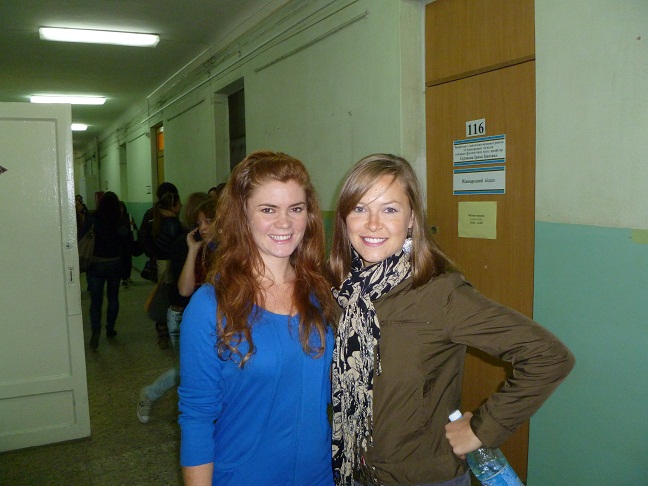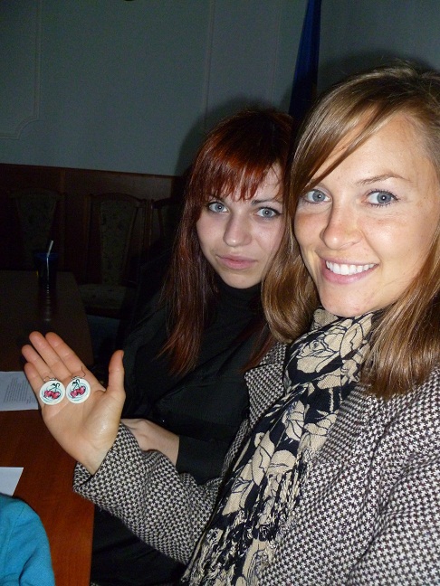 Our first official ministry event was attending the CCX Movie Night at one of the campuses. The general idea is to play a movie with some social and/ or moral themes and then discuss them for about ½ hour after the movie is done. Students attend as a way to be social and to practice their English with native speakers. Unfortunately for me, the movie they played was The Boy in the Striped Pajamas…an uber depressing film set during WWII. Despite the tears and general sadness that sets over a room after such a film, I enjoyed some great conversation with my group of students and even made a few friends! Below is a picture of Victoria, my first official Ukrainian friend, and the pair of earrings she gave me as a gift:) Sweet girl.