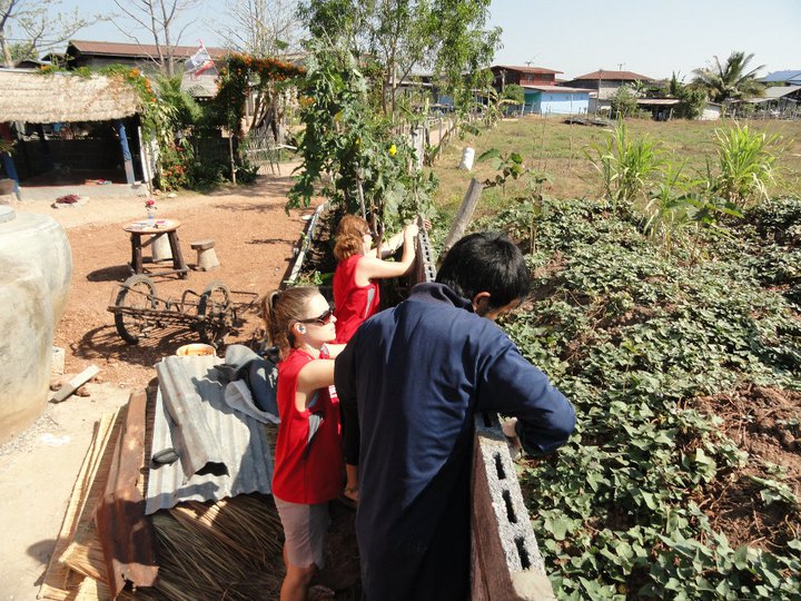This week our time is being devoted to serving our host family and the neighborhood children. Our mornings have been spent mixing concrete and building up the concrete fence around our host family’s property. After eating breakfast and washing the dishes, we all suit up in our ‘work jerseys’ and begin by mixing the concrete. Once it is approved by Nan, we commence the building process. It’s a nice change of pace… jamming out to our ipods and taking breaks for sliced coconut. There is great satisfaction in looking at the tangible progress after two days of hard work.