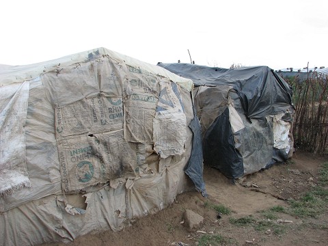 and torn tarps and scraps of trash. For these people, things have not gotten
