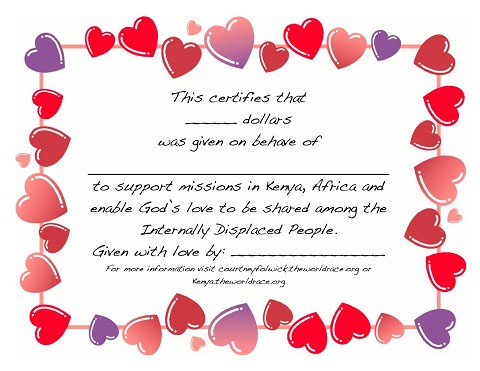 I’ve attached a certificate that you can print as a gift for someone you care about letting them know that you have made a donation on their behalf.