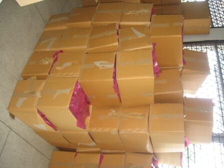 Here is the warehouse and all these boxes are filled with bibles, tracts and DVD’s.