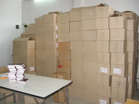Here is the warehouse and all these boxes are filled with bibles, tracts and DVD’s.