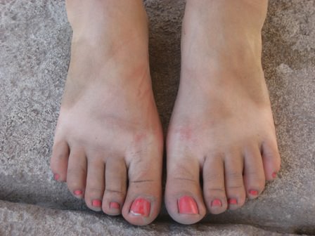 Yes these are my feet (20 minutes after showering) and that is not all dirt but my tan line!  You should see my farmers tan!
