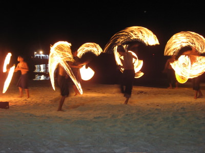Fire dancers on the beach at night