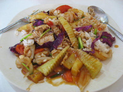 (local architecture here in Ka Somet) (real Thai food for a $1)