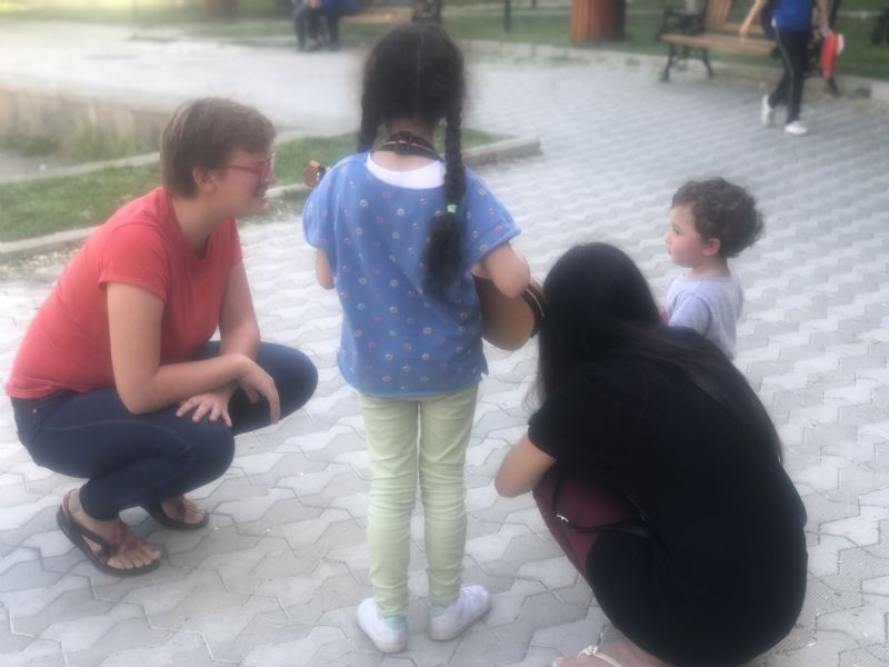 The other day I was sitting at the park playing my ukulele. Deb (teammate) had bought flowers and was giving them out to random folks around. There was a mama watching her kids play and Deb went to give her a flower and talk. I had this selfish desire to never stop playing my ukulele, and I was like where is this coming from? But I looked up and Deb, the mom, and her son were walking towards me.