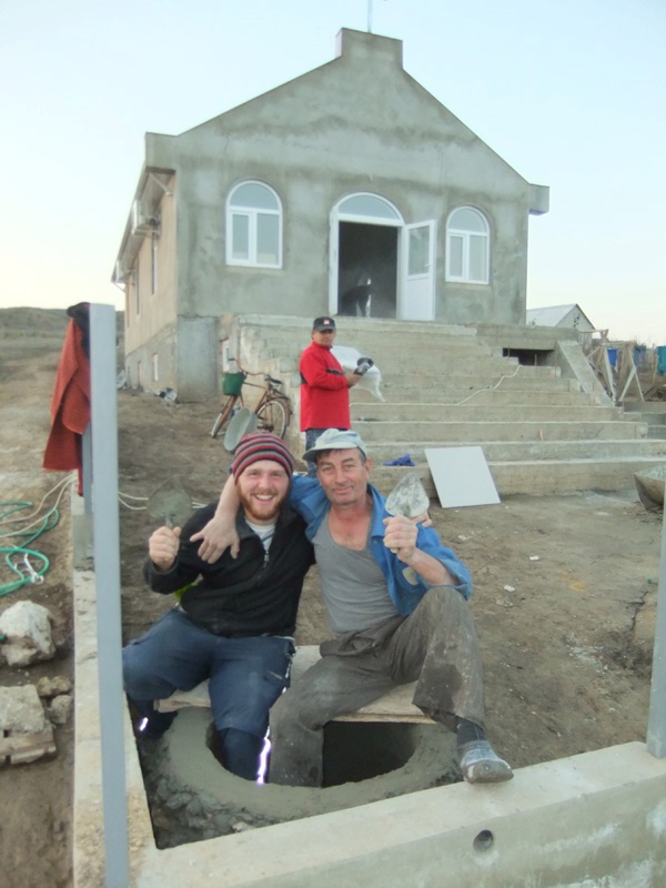Last Monday, when we arrived we saw a man standing about knee deep in a hole he was digging near the corner of the property. It turns out his name was Grisha and he was there to dig the reservoir that will hold all the fresh water for the church. My job was to move the dirt he pulled out of the hole further away so it didn’t stack up so close to the hole.