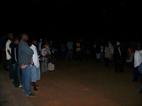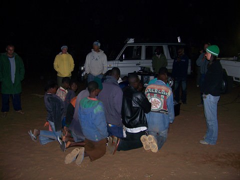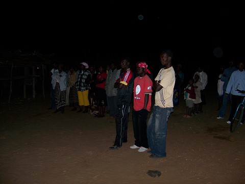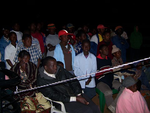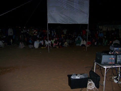The second night we showed the Passion movie in the middle of a stream of bars.