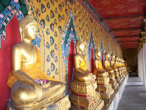 Buddha. Temples. Incense. Golden images. Monks. Spirit Houses. Offerings.