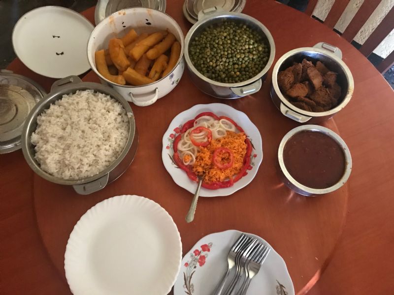 Everyday we have breakfast around 7am, lunch around 1pm and dinner around 7pm. Our hosts provide the meals and I am very thankful for that. It’s such a blessing. For breakfast we eat some egg with bread and coffee. For lunch we usually have rice, beans, potato, meat and a veggie. For dinner we usually have pasta, potato, meat and a veggie.