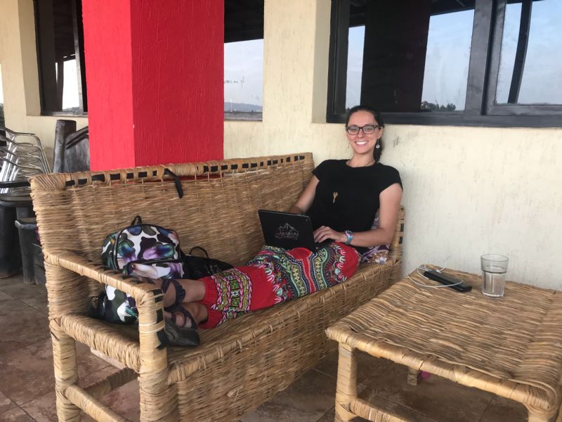 Thursday’s we go to the school again in the morning and work with 3-5 year olds. In the afternoon, we go to a place with WiFi so that we can blog. (And shower) Here’s me in my favorite corner at the resort blogging.