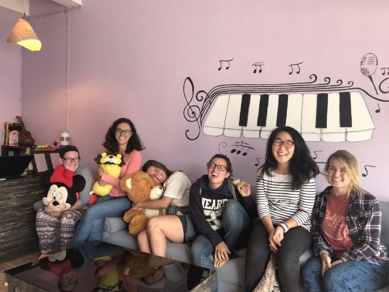 When we first got together as a team, after having just learned who our new teammates would be, we prayed. And when we prayed, we each got different visions or words God spoke over us. Jenny got the vision of an anchor, resembling how our team shall continue to be anchored in Christ, in all that we do and are. Then Carolyn shared how she saw us crossing a rickety, old bridge and how adventurous we would be, similar to Kuzco in the movie “Emperor’s New Groove”. We sat on those two images overnight and at our next gathering, which happened to be lunch at a Middle Eastern resturant in Camobida (we’re very cultured), Tori coined the two meanings together and got the “Groovy Crew”. Hence our name was born.