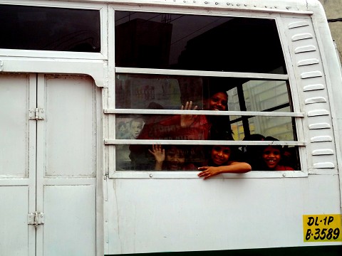 So we entered into India late Tuesday night.. May 3rd and already we felt a difference in this place. The spiritual darkness sits over India like a blanket. After gathering our things and waiting outside to be picked up we collected many stares and questionable looks. We didn’t have tickets to our contact location so we have stayed the past two nights at an orphanage here in New Dehli. It is a blessing I don’t have to stay here all month because I have already fallen in love with all the children, I would be a complete mess leaving! This morning Kim and I walked them to the school bus stop and they were hanging out of the bus to say goodbye to us!