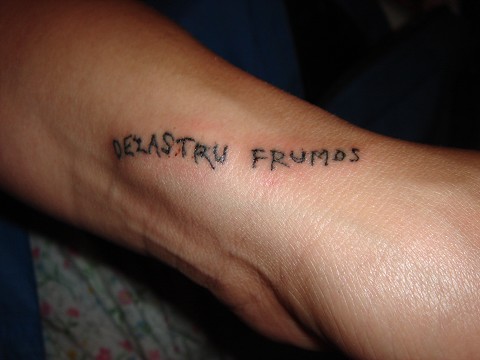 While in Romania ministering to the Gypsies Katie, Shiloh and I decided we wanted to have a little memory of our time in Villi Tecci. So…we got tattoos. It’s on my wrist and it says “DEZASTRU FRUMOS” which is Romanian for “Beautiful Disaster”. While we were in Calcutta walking down the streets I was asking the Lord about everything I was seeing. The place was so colorful and old but there were so many people worshipping plastic monkeys, elephants and weird looking things on the side of the street. There were so many people who didn’t have very much money at all but who would spend what they had on flowers to put on these statues. Loud bells of rickshaw drivers, women begging for money for their babies, random horrible smells followed with incense, and the Muslim call to worship. I asked the Lord to show me Calcutta through His eyes. I heard Him say that this place was a disaster but with His grace it is made beautiful. It was His beautiful disaster. I realized that this picture was of me too. I’m a mess, but I’m His beautiful mess. He completes me. So….here it is: (picture taken right after tattoo was done)