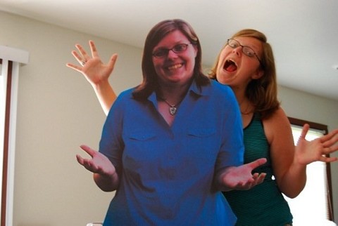 –I gave my friends a life size cardboard cutout of myself as a housewarming gift.