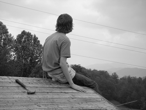 June 2007–Ashville, North Carolina–A teen looks toward the horizon after a hard day of roofing.