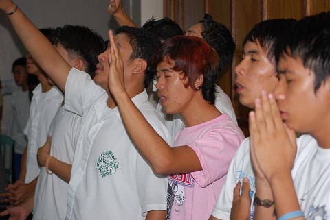 January 2008–Bacolod City, the Philippines–Teens surrender it all in worship at a Youth for Christ worship night