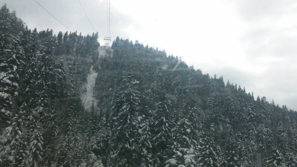 on the enclosed lift and went higher and higher up the mountain and