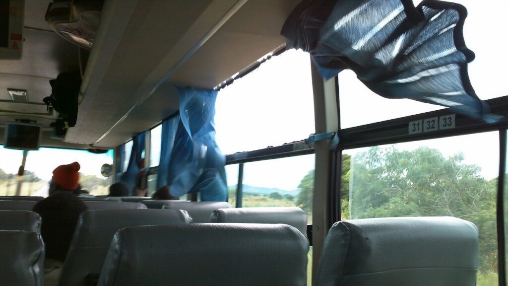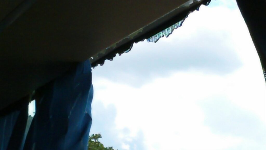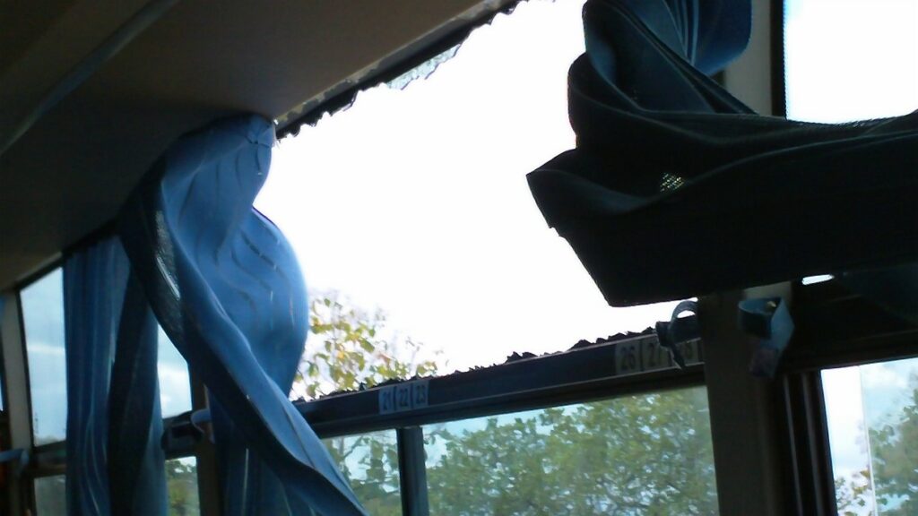 the speeding bus hitting bumps in the road…shards of glass flying everywhere