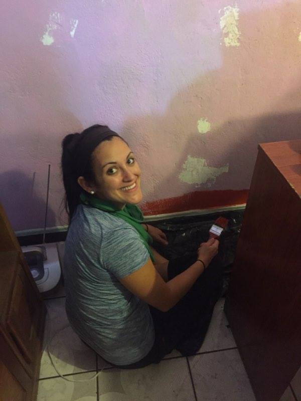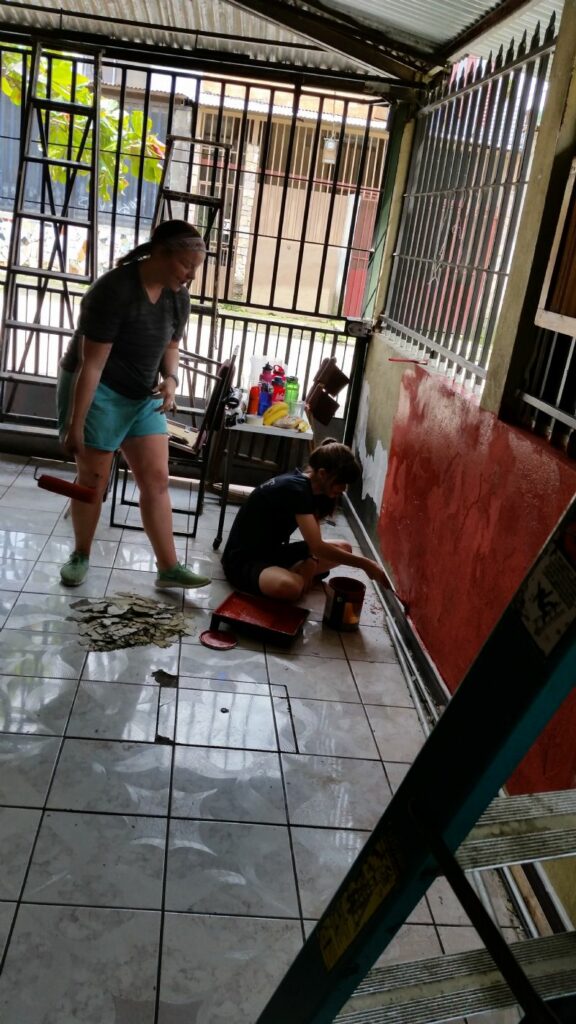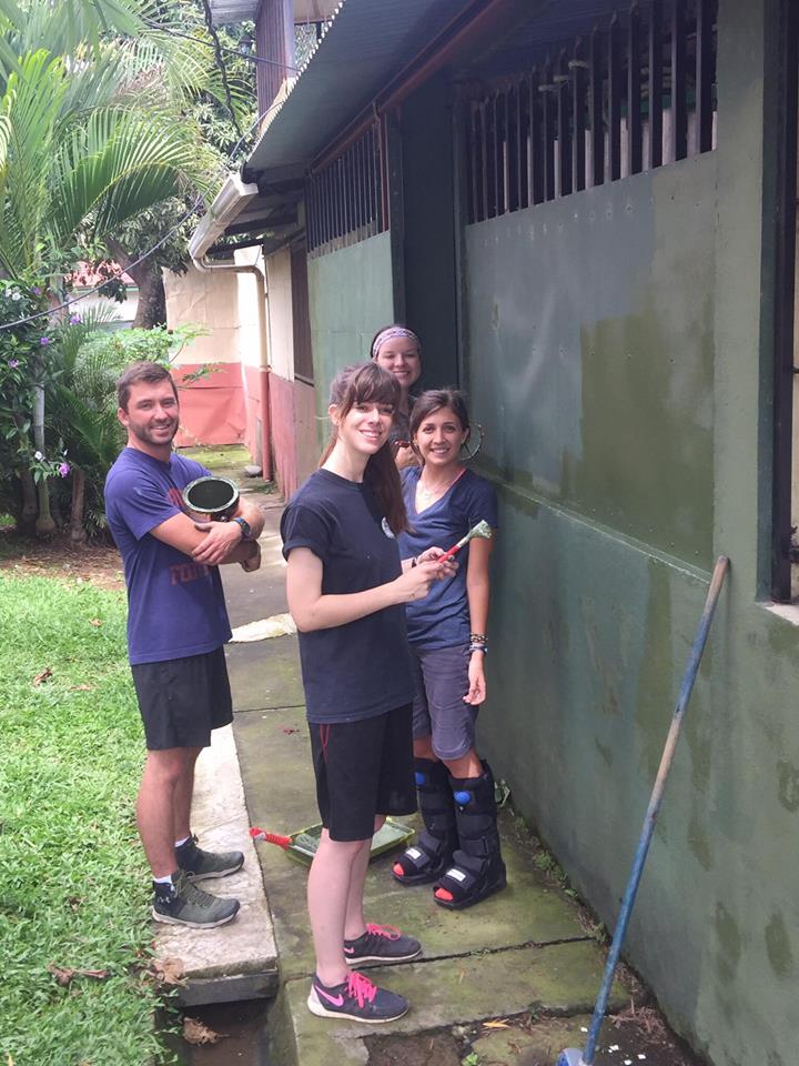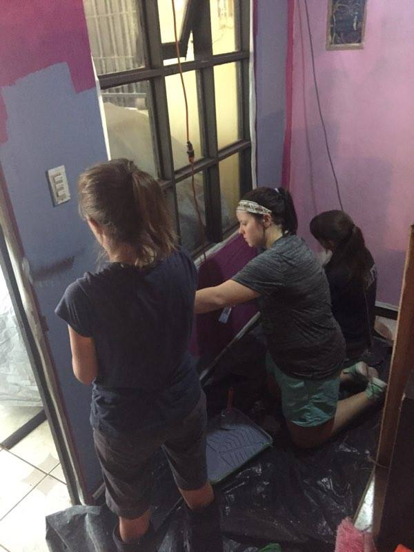 Elizabeth, Jordan, Keaton, and Laura painting the outside/inside of our Tican Family’s carport!