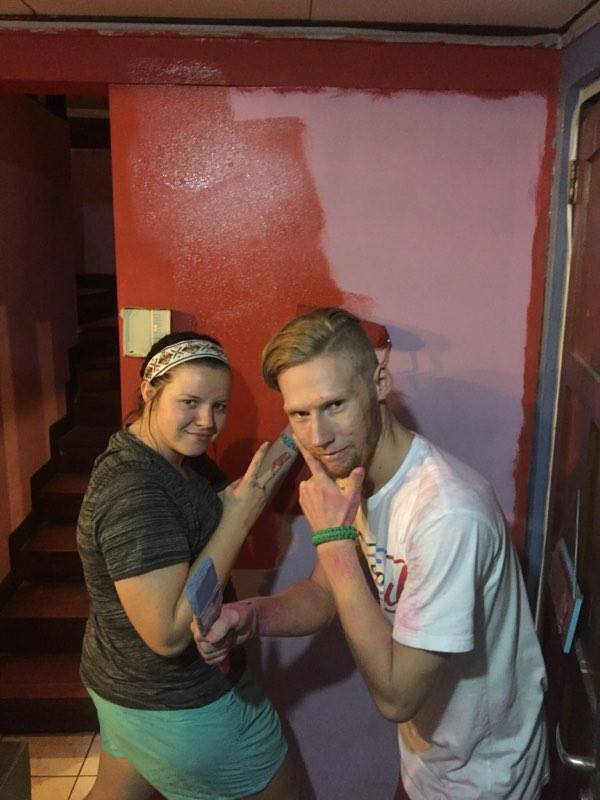 The team all painting the indoors!