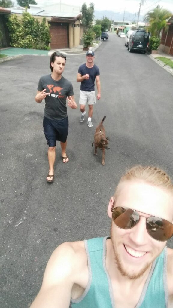 Myself, Keaton, and Jonathan walking June’s Dog, Lucky, for her!!