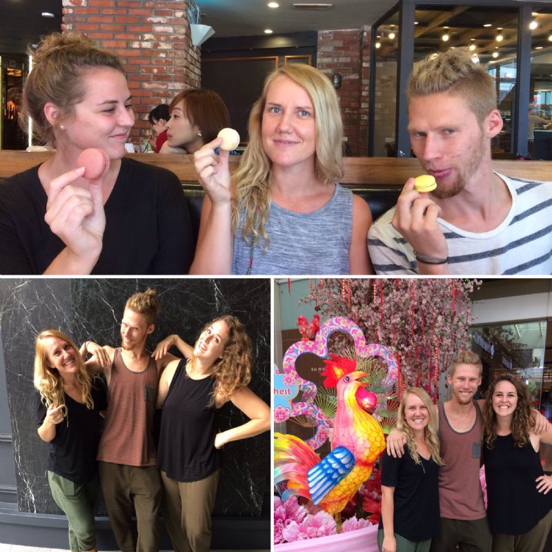 (Top photo left to right: Victoria, Katie, and me eating macaroons!)